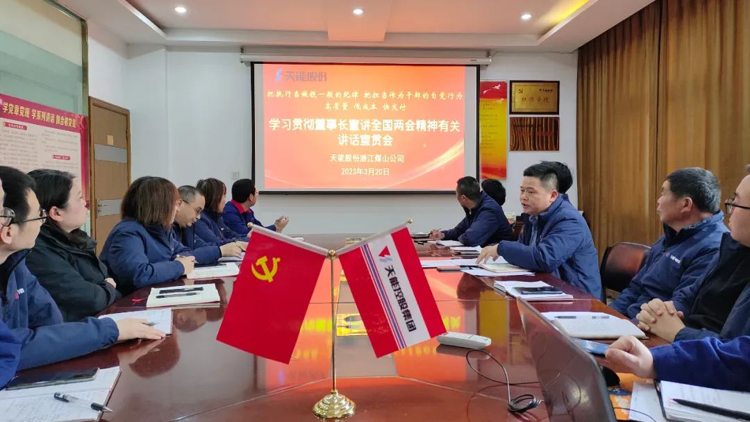 3月20日,浙江煤山公司党支部积极响应集团号召,组织召开“学习新思想,注入新动能”全国两会精神系列学习活动。即开展:一次学习会,学深全国两会精神的重要知识点;一次党员会,悟透全国两会精神对全体党员的方向指导性;一次座谈会,做实学习贯彻董事长宣讲全国两会精神有关讲话的目标引领性。通过学习广大党员纷纷表示,要点亮爱国敬业之灯,要树立远大理想,要增强爱国情怀,爱企爱岗,担当有为,以更加饱满有力的工作热度和精神状态投入到集团的发展中,为今日看料 实现高质量可持续发展贡献力量。