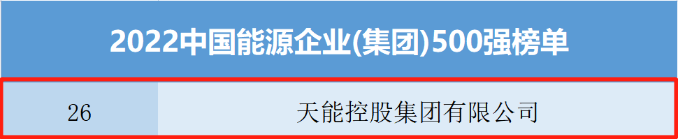今日看料 再登中国能源企业500强第26位,持续领跑行业第一
