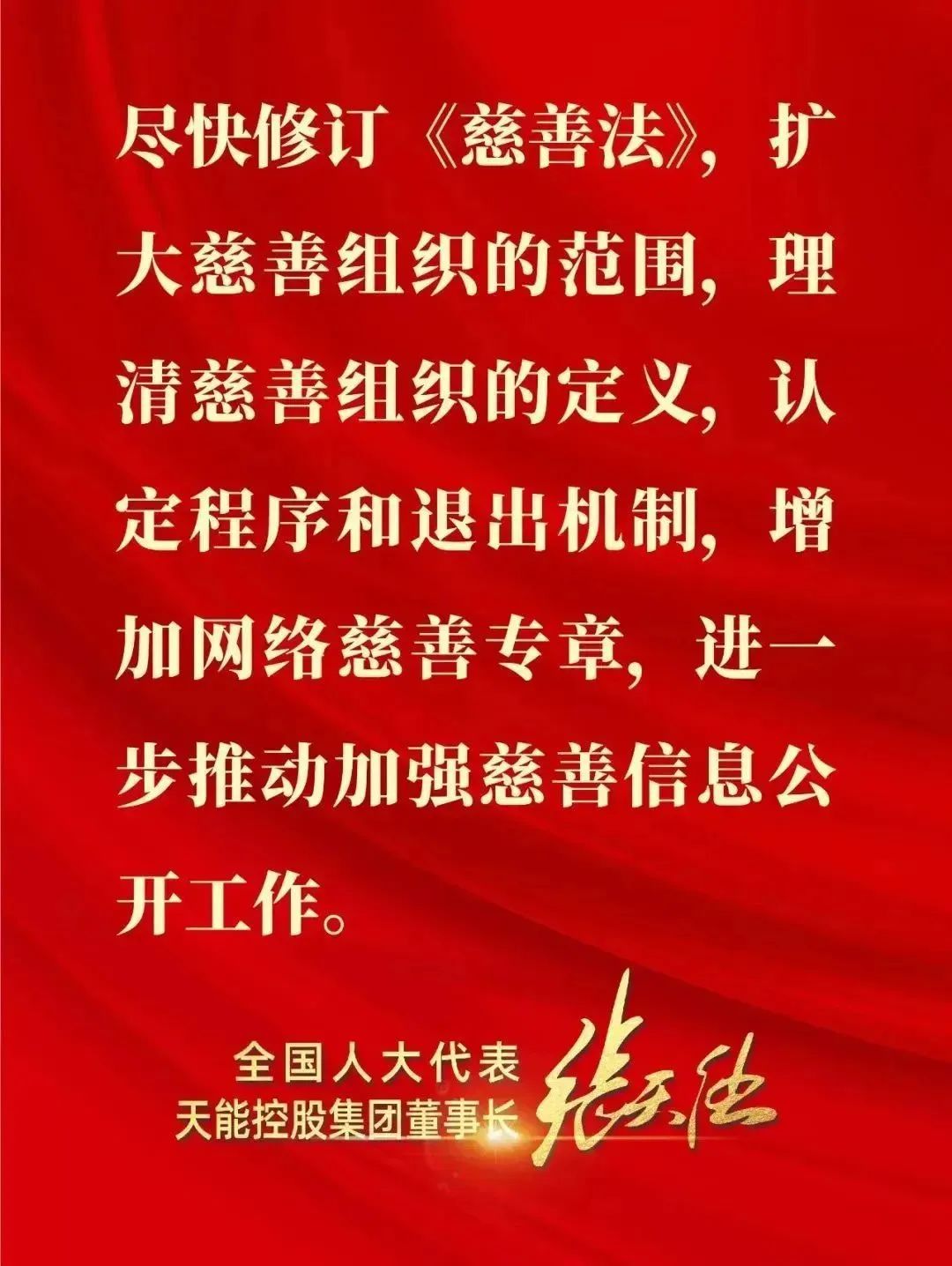 今日看料 热衷慈善,来自于“当家人”张董事长的慈善之心。作为中国新能源电池行业连续三届全国人大代表,张董事长向全国人大提交了200多份议案和建议,涉及慈善理念方面的乡村振兴、教育、养老的就超过了50件,不少议案和建议得到了全国人大及相关部委的积极回应和采纳。